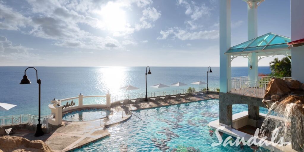 - “Stay at One, Play at Three”. Complimentary shuttle and exchange privileges with Sandals Grande St. Lucian and Sandals Halcyon, offering a total of 29 restaurant options.
